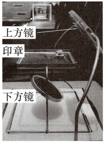 现象;通过下方镜能看到印章底部的字,这属于光的反射
