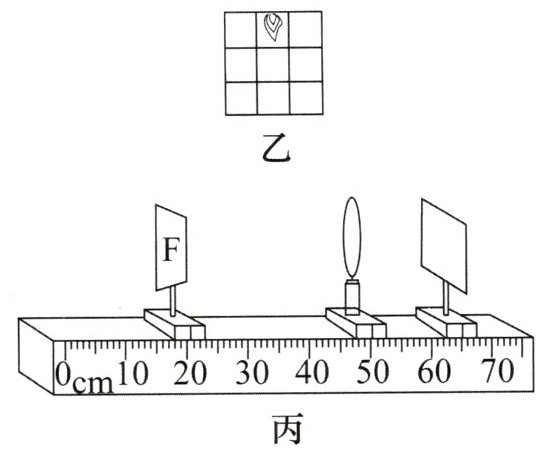(3)利用图丙的装置,在“F”字形光源及光屏位置不变的情况下,取下凸透镜,在原凸透镜位置上放置一块带小孔的光板,若想承接与光源等大的像,则光源应该向