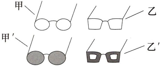 7. 小乐拿着甲、乙两副眼镜分别正对太阳光,并在下方纸板上承接到它们的“影子”甲'、乙',如图所示。根据这一现象可以判断(