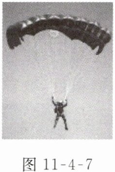 7. 如图11-4-7所示,跳伞运动员在空中匀速直线下降,在此过程中运动员和伞的动能