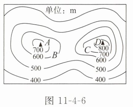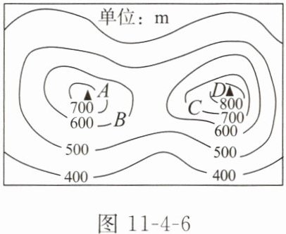 6. [跨学科]为响应国家“每日体育锻炼时间不低于两小时”的要求,某校组织学生远足爬山,开展户外运动。爬山区域的等高线如图11-4-6所示,不考虑人体重的变化,队伍重力势能最大的位置是(