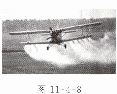8. 现代农业利用喷药无人机喷洒农药,安全又高效。如图11-4-8所示,喷药无人机在农田上方沿水平方向匀速飞行,同时均匀喷洒农药,此过程中,喷药无人机的动能