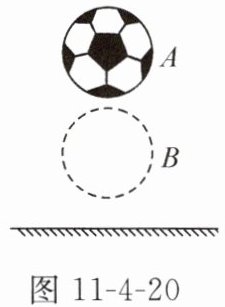 8. 如图11-4-20所示,足球从A点自由下落到地面后,反弹到最高点B点。则足球在A点的机械能