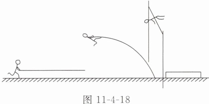 6. [物理与体育]运动员撑竿跳高时,经历了“助跑—起跳—越杆—落下”的过程(图11-4-18),人助跑时的