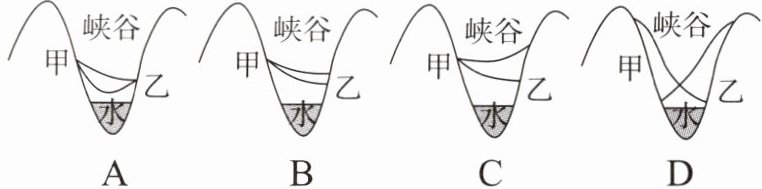 7. 溜索曾经是劳动人民跨越峡谷的重要工具,人们借助滑轮利用自身重力沿溜索无动力滑行,利用木片等与溜索之间的摩擦减速,如图11-4-19所示。某村寨需修建两条溜索,方便游客从村寨(甲)前往茶园(乙)并返回。已知甲、乙海拔相差约30m、相距约150m,峡谷深约800m。最合理的溜索设计方案是(