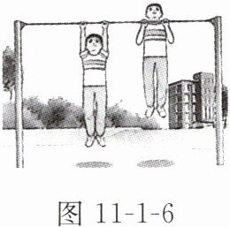 4. [物理与体育] 重为$500N的小明做引体向上的情景如图11 - 1 - 6$所示,他两手握住单杠,两脚离地,两臂及身体自然下垂,然后缓缓曲肘,将身体向上拉起,直到下巴超过单杠。在这个过程中,小明做功的大小最接近(