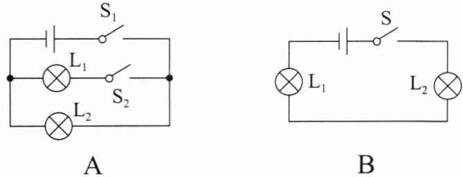 )。A.只闭合开关$S_2,$两个灯泡并联