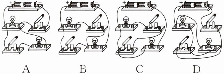 8. (多选)实验小组的同学连接了下列四个电路,以探究开关的控制作用。当开关都闭合后,只有一个灯泡能发光的电路是(