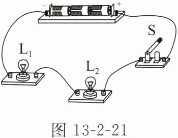6. 在图13-2-21所示的电路中,闭合开关后,小灯泡$L_1$和$L_2$