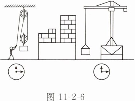 6. 建筑工地里常用来搬运砖块的机械有滑轮组和起重机,如图11-2-6所示。观察题图可知:在相同的