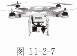 7. 如图11-2-7所示的四旋翼无人机下方悬挂着一台质量为$0.2kg$的摄像机。在$10s内无人机从地面竖直匀速上升了20m$,然后边摄像边斜向上匀速飞行了$30s$,仪表盘上显示无人机的离地高度为$40m$。整个过程中,无人机对摄像机做的功为