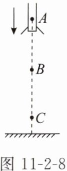 D 【解析】火箭所受的重力不变,且$AB=BC$,由$W=Gh$可知火箭所受的重力在AB段做的功等于在BC段做的功,故A、B错误。火箭沿竖直方向先从A点减速运动到B点,再从B点匀速运动到C点,则火箭在AB段的平均速度较大;已知$AB=BC$,由$t=\frac{s}{v}$可知火箭通过AB段所用的时间较短;做功相同,由$P=\frac{W}{t}$可知,火箭重力在AB段做功的功率较大,故C错误,D正确。