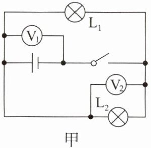 7. 图 13 - 6 - 10 甲是测量电压的电路图,闭合开关时,两只电压表指针的指示情况如图 13 - 6 - 10 乙、丙所示,则 $ L_1 $、$ L_2 $ 两端的电压分别是(