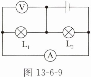 5. 在图 13 - 6 - 9 所示的电路中,当电压表的示数为 $ 2.5 \, V $ 时,灯 $ L_2 $ 两端的电压(