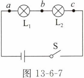 3. 小雨探究串联电路中电压的特点时,连接了图 13 - 6 - 7 所示的电路,用电压表测出 $ U_{ab} = 3 \, V $,$ U_{bc} = 3 \, V $,$ U_{ac} = 6 \, V $,在表格中记录数据后,下一步应该(