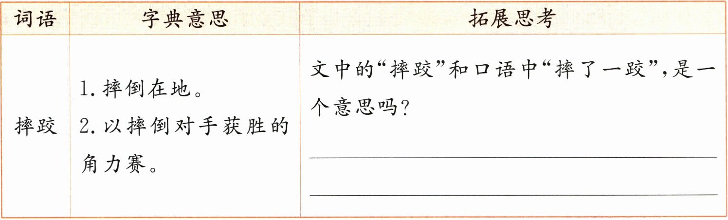 不是,文中的"摔跤"是一种游戏,"摔了一跤"是指摔倒在地。