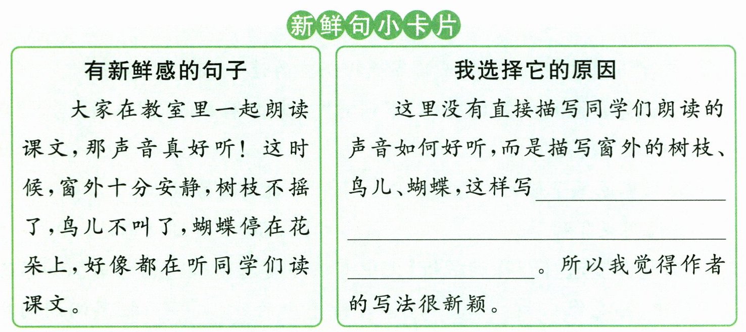 3.【寻写作技法】【新鲜句解析】请完成“新鲜句小卡片”的填写。
