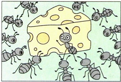 4. 命令年龄最小的一只蚂蚁吃掉奶酪渣时,蚂蚁队长内心很(