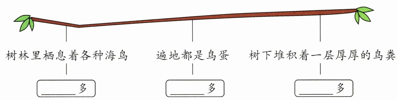 ②西沙群岛也是鸟的天下。岛上有一片片茂密的树林,树林里栖息着各种海鸟。遍地都是鸟蛋。树下堆积着一层厚厚的鸟粪,这是非常宝贵的肥料。