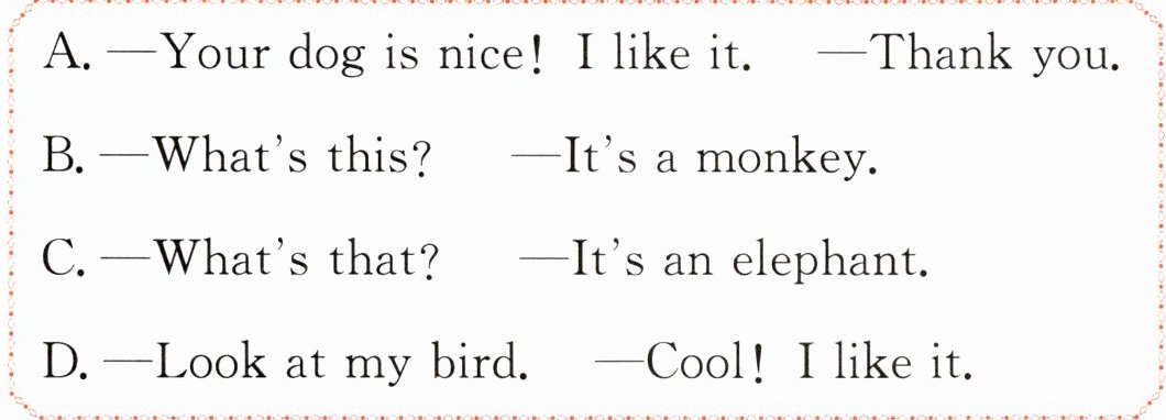 二、给下列图片选择相应的对话,将序号填在方框内。