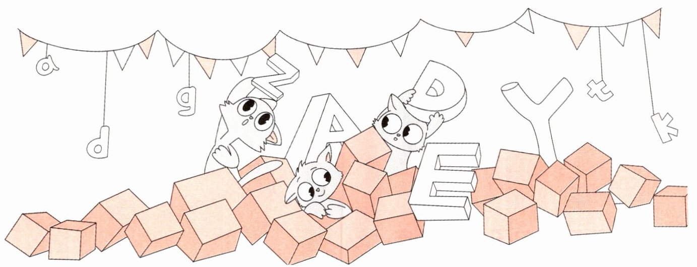 二、仔细观察,将下面图片中的英文字母涂上你喜欢的颜色。