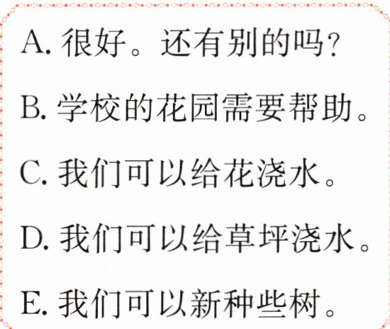 )D. We can protect(保护) the flowers and plants.( )E. We can pick(采摘) the pretty flowers.