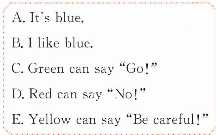 )4. A. Yellow can say "Be careful!" B. It's yellow.