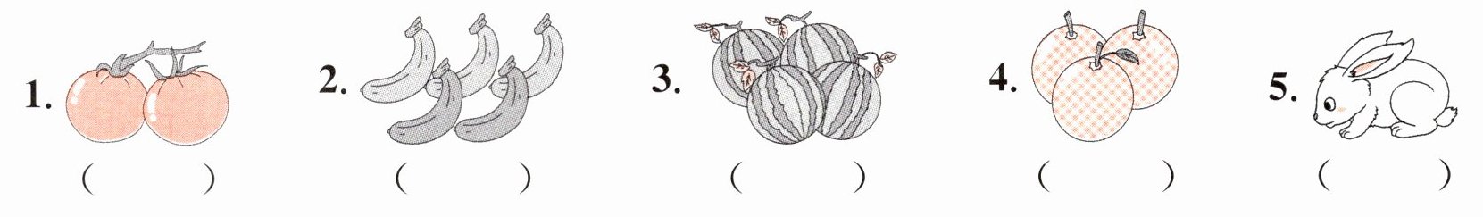 二、看一看,数一数,选择与图片对应的颜色和数量,将序号写在括号内。
