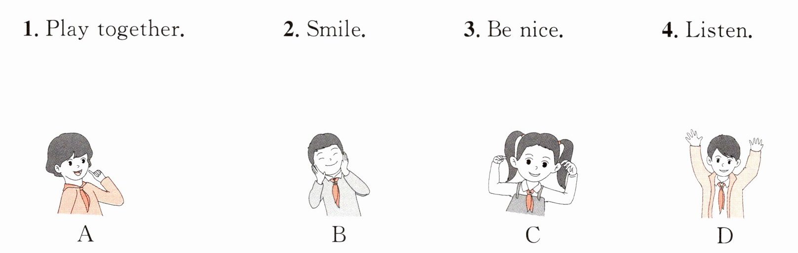 )2. A. hand B. listen C. shake(