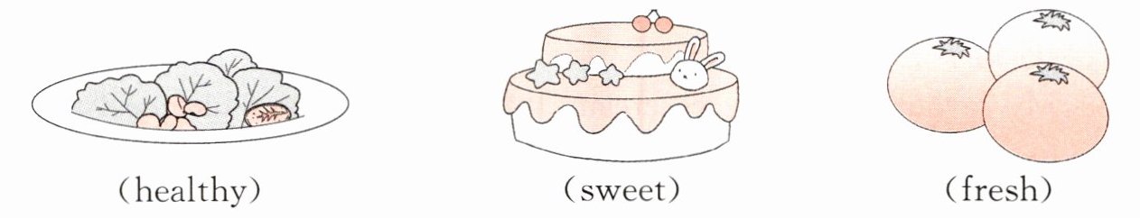 1. delicious 2. hot 3. sweet 4. fresh; healthy