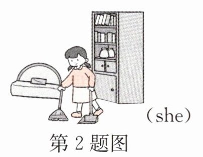 1. —What can he do? —He can do(some)kung fu. 2. —What can she do? —She can clean the/her room.