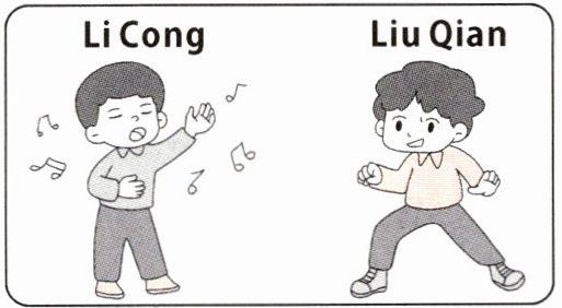 四、校园才艺展示即将到来,班主任王老师想了解学生的才艺。请结合图片,选择合适的选项补全对话。