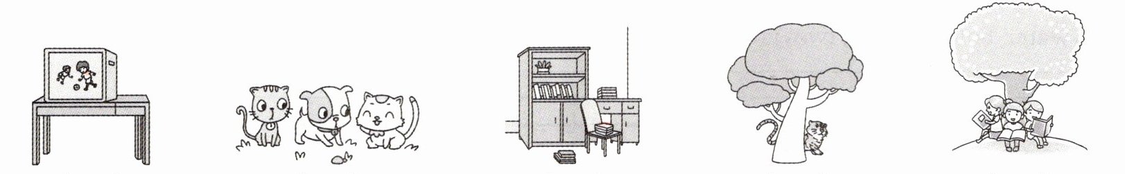 1. two; above 2. is; on 3. are; chairs 4. some; bed 5. behind