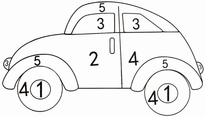 根据题目要求,需按数字对应颜色给小汽车涂色:
