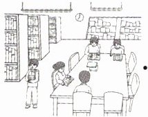 1. library 2. hospital 3. playground 4. shop