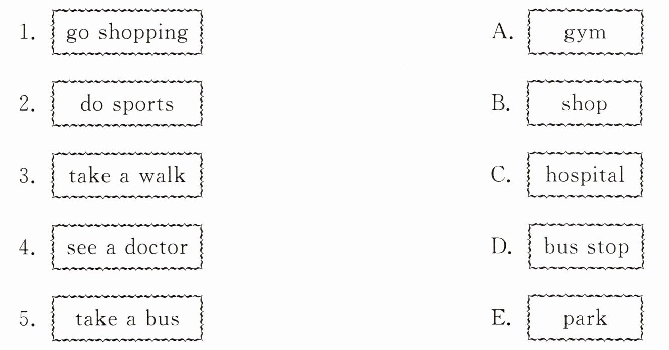4. see a doctor D. bus stop