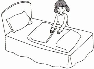 B. Li Hua is making the bed.