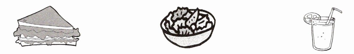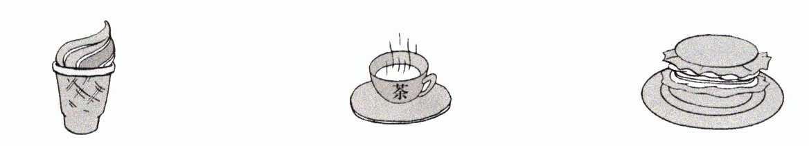 1. hamburger;sandwich;egg;noodles 2. tea/hot water;milk;juice