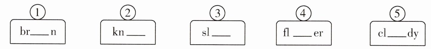 1. brown 2. know 3. slow 4. flower 5. cloudy