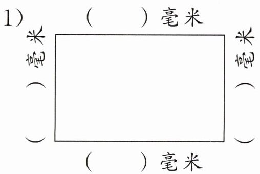 如图,1厘米中间的每一个小格的长度是( )。1厘米里面有( )个1毫米,所以1厘米= ( )毫米。