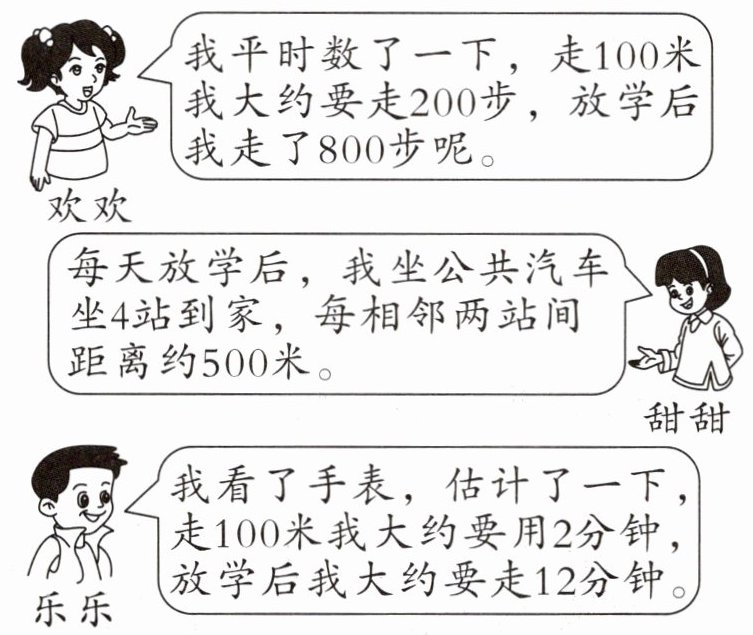 1. 三个同学回家,你能估出他们家离学校有多远吗?