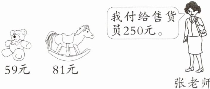 把59看成60,把81看成80,60×3=180(元),80×3=240(元) 180<240<250,张老师买的是木马。