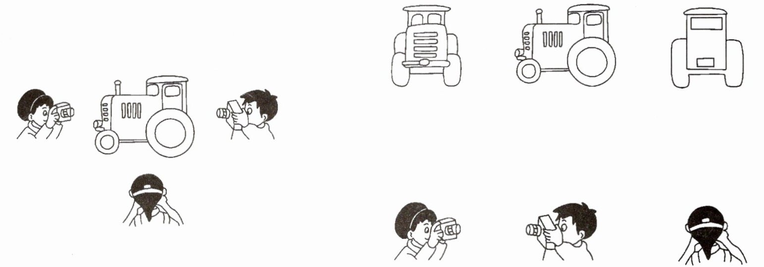 2. 下面三幅图分别是哪个小动物看到的?连一连。