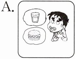 )2. I'm thirsty and hungry.