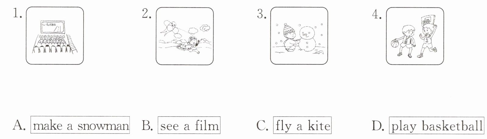 二、根据图片及首字母提示,补全句子或对话。