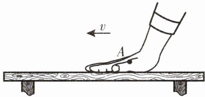 8. (2024·河南)如图,手按压水平桌面并向左滑动,可感受到桌面对手的支持力和摩擦力。请以 A 点为作用点,画出桌面对手的支持力和摩擦力的示意图。