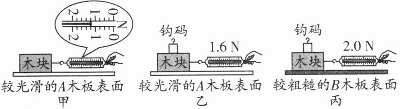 原理,木块受到的滑动摩擦力大小等于弹簧测力计的示数。(3)分析图甲和图乙可知:在接触面粗糙程度相同时,