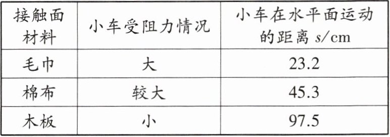 同学们分析表中内容,得到的实验结论是:在其他条件相同时,小车受到的阻力越小,运动的距离越