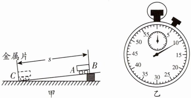 $ s $。(3)在测量小车从 $ A $ 点运动到 $ C $ 点的平均速度时,某一同学首先测出图甲中的距离 $ s $ 后,再测出小车从 $ A $ 点滑到 $ C $ 点所需时间 $ t $,则上述测量中
