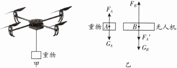 8. (双选)如图甲所示是无人机用绳子吊起重物匀速上升时的情景,此时重物和无人机受力示意图如图乙所示,下列关于平衡力和相互作用力判断正确的是(